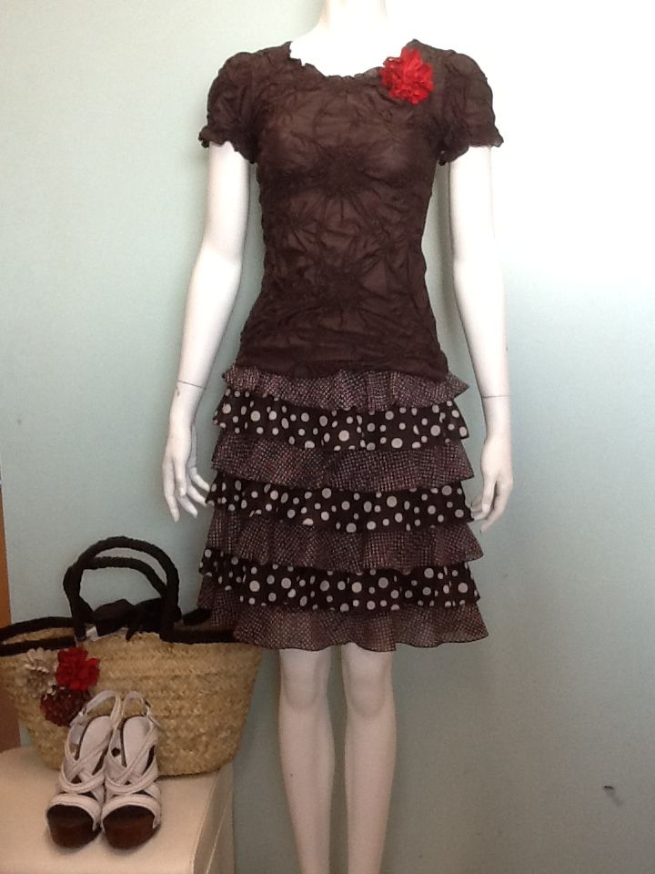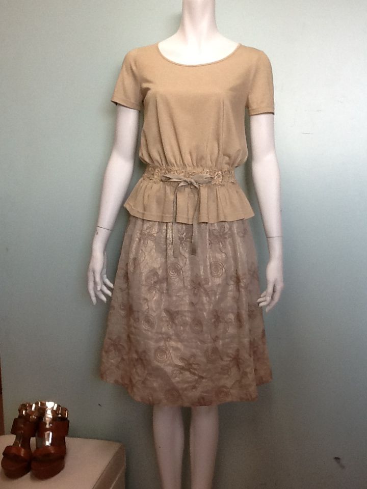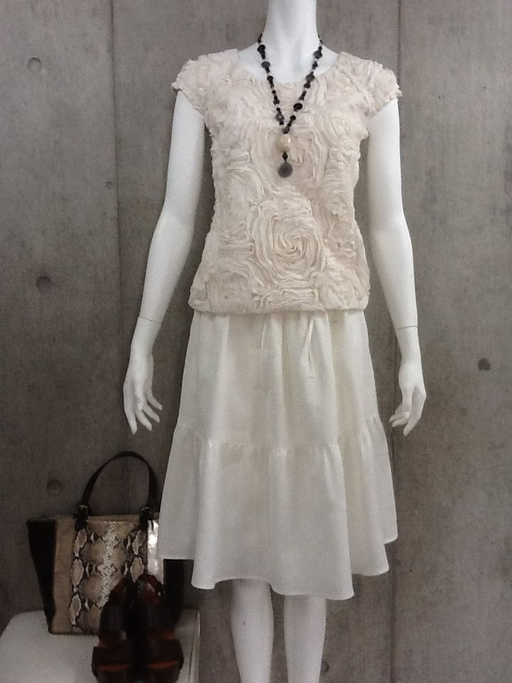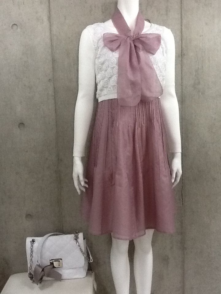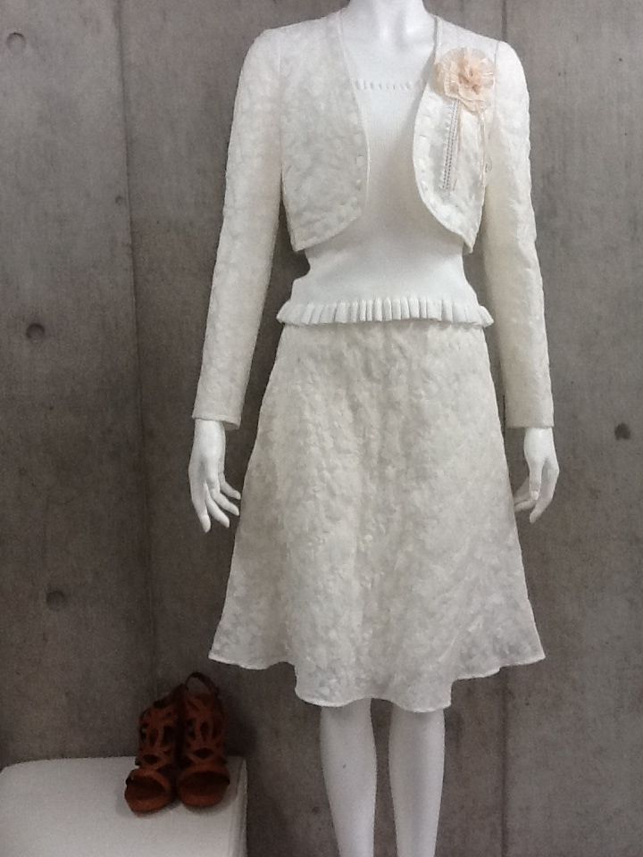 スカートは、ポリエステルシフォンのかる~いデザインスカート。安心の56センチ丈。