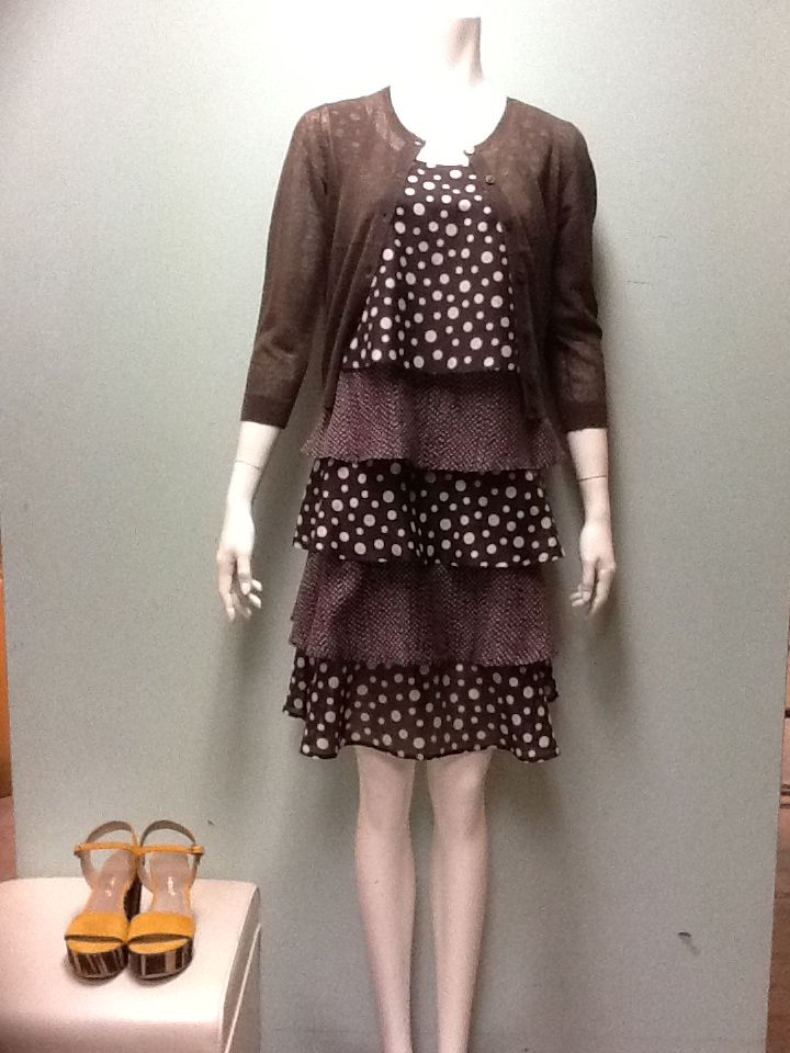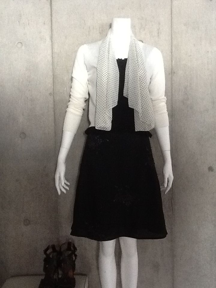 ニットには、ポリエステルシフォンのドットスカーフが付いています。