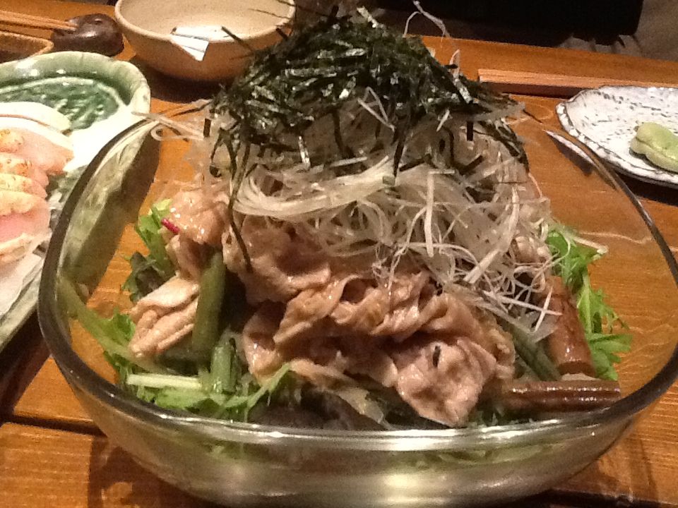 山菜と冷しゃぶのサラダわさびドレッシング