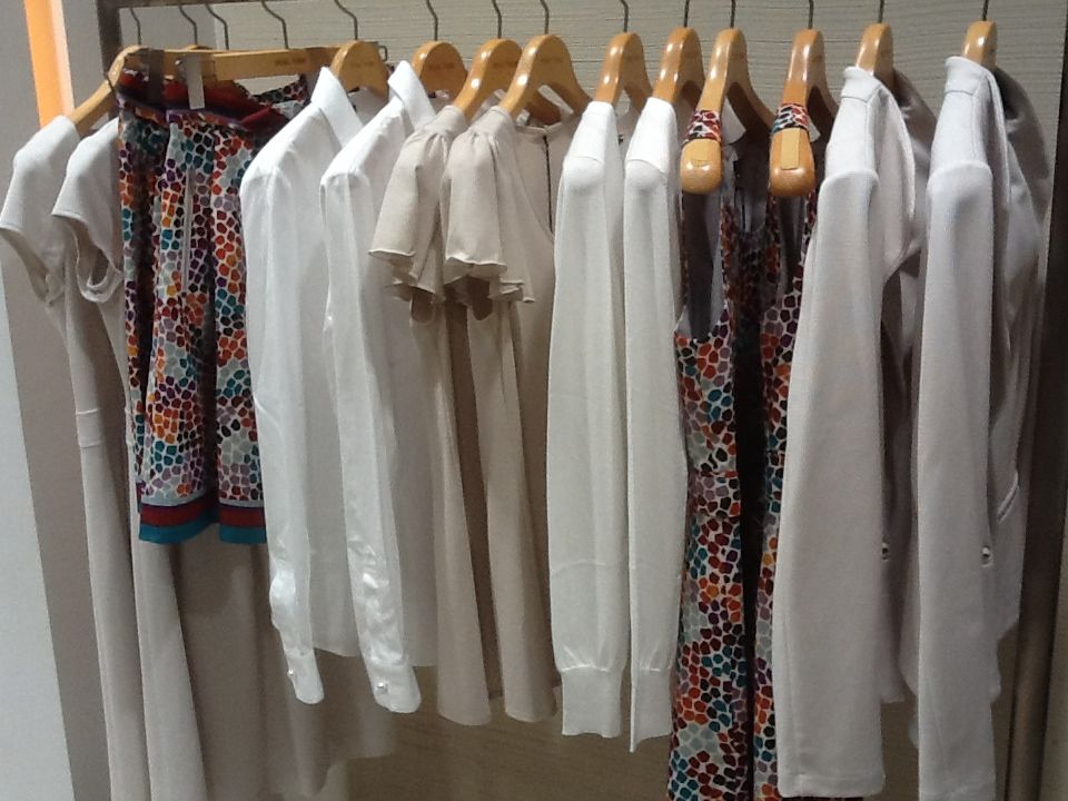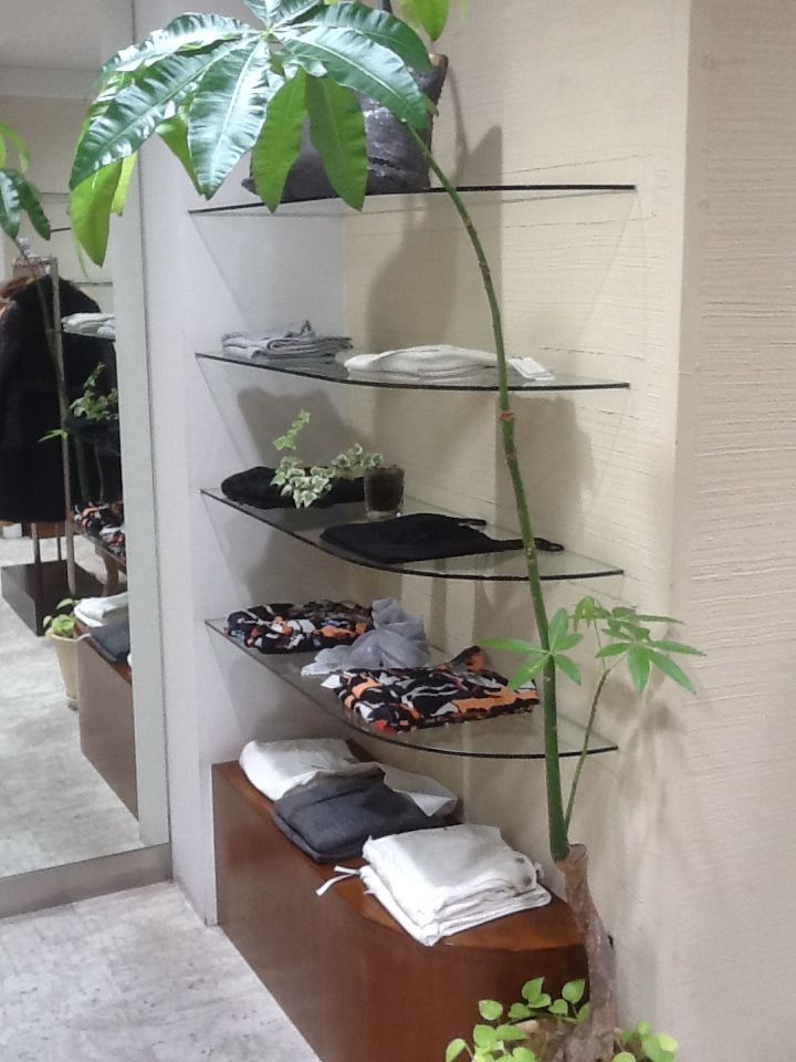 フィッティング近くの棚には