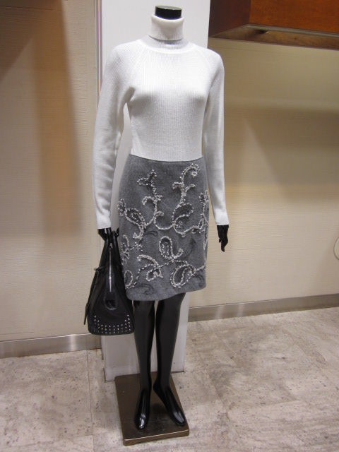 ライトグレーの少し短めのスカート