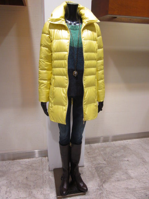 レモンイエローのライトダウンを