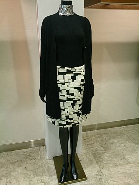 幾何学模様のスカートは