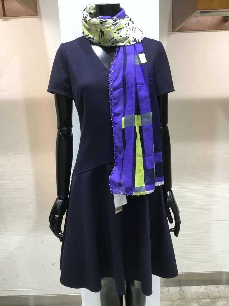 プリントのワンピースとスカートのブルー系