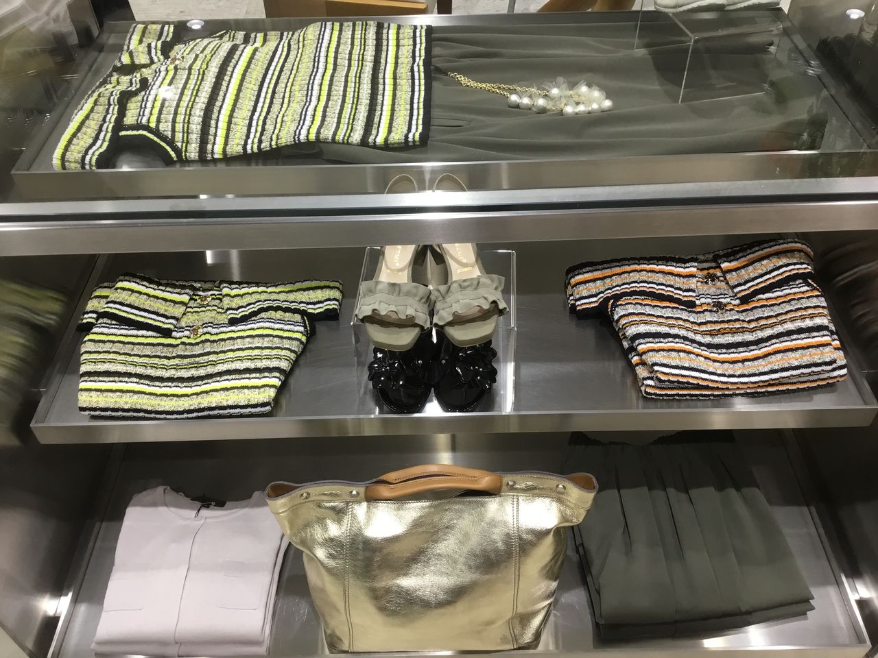 夏らしくゴールドのBAGも…
