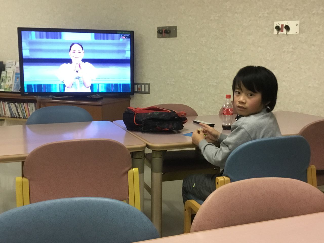 病院の休憩所で甥っ子とテレビ鑑賞中📺