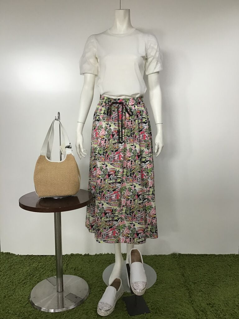 こちらも初日の(1)でプリントのロングスカート