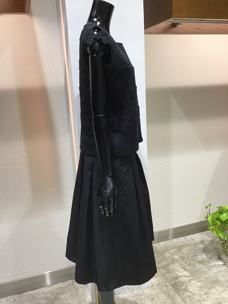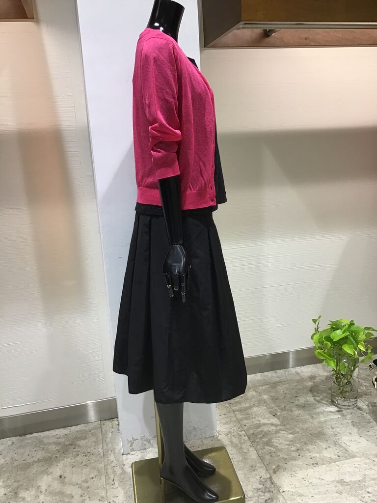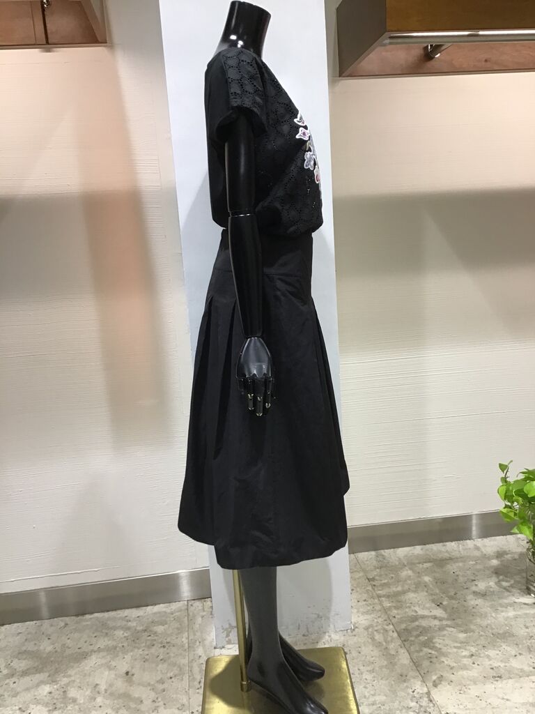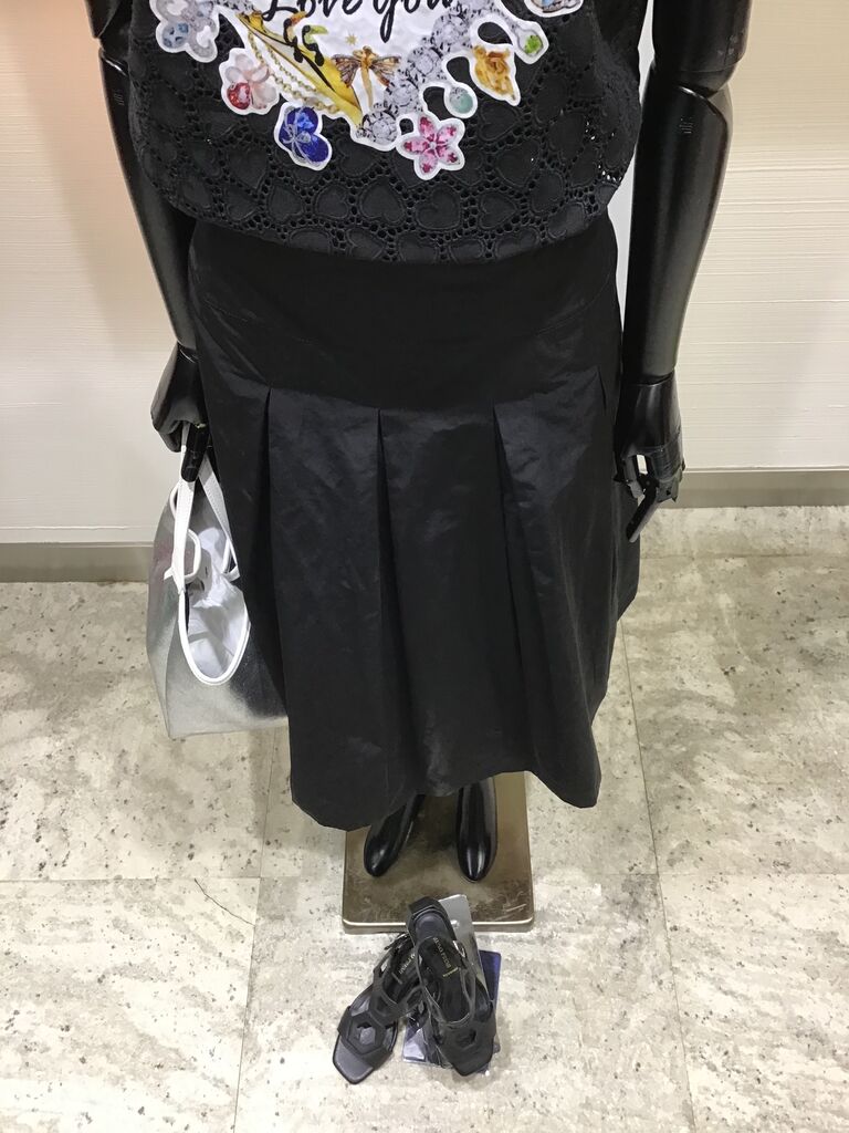 黒カットソーに黒のタフタスカートでコーディネート❣️