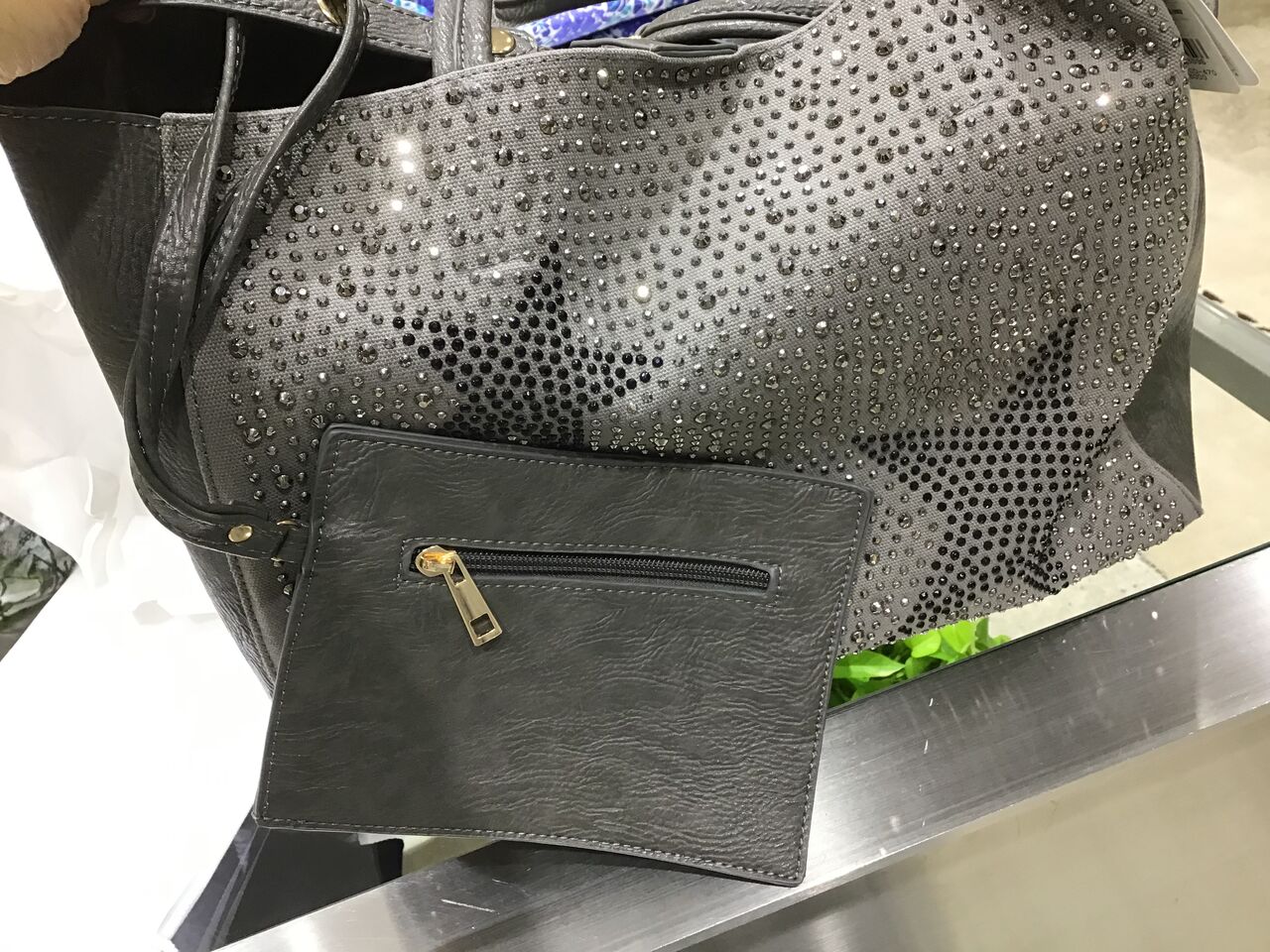 前面には大小のシルバービジューと…