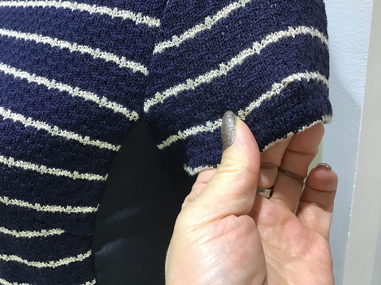 ネイビーの無地部分と…