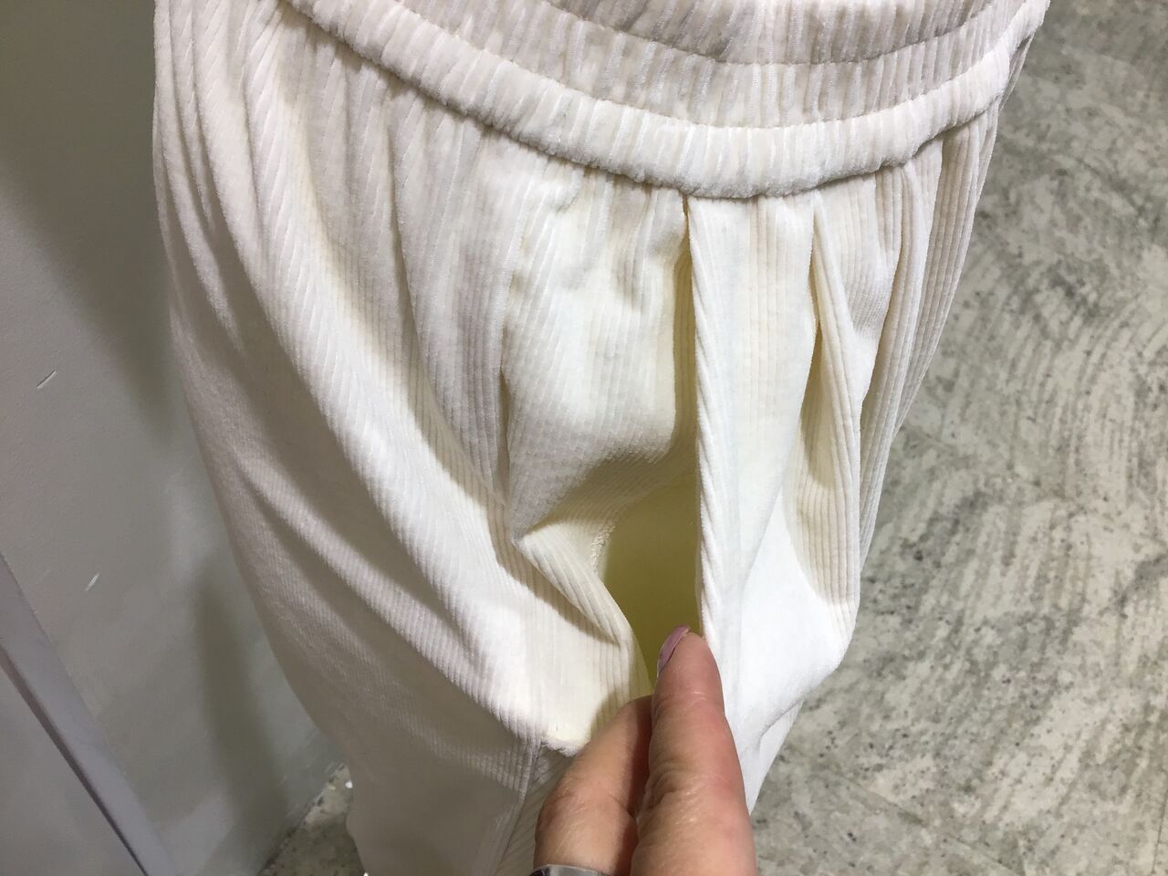 ウエストのシャーリングも入っていますので…