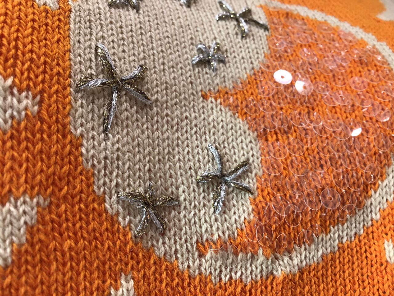 透明のスパンコールと刺繍を施しています