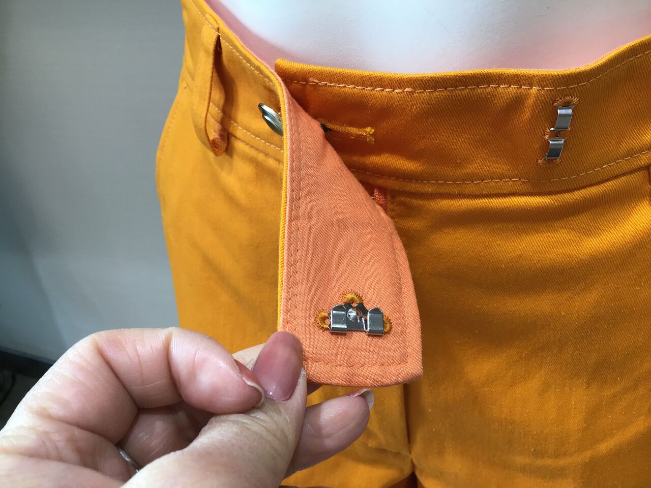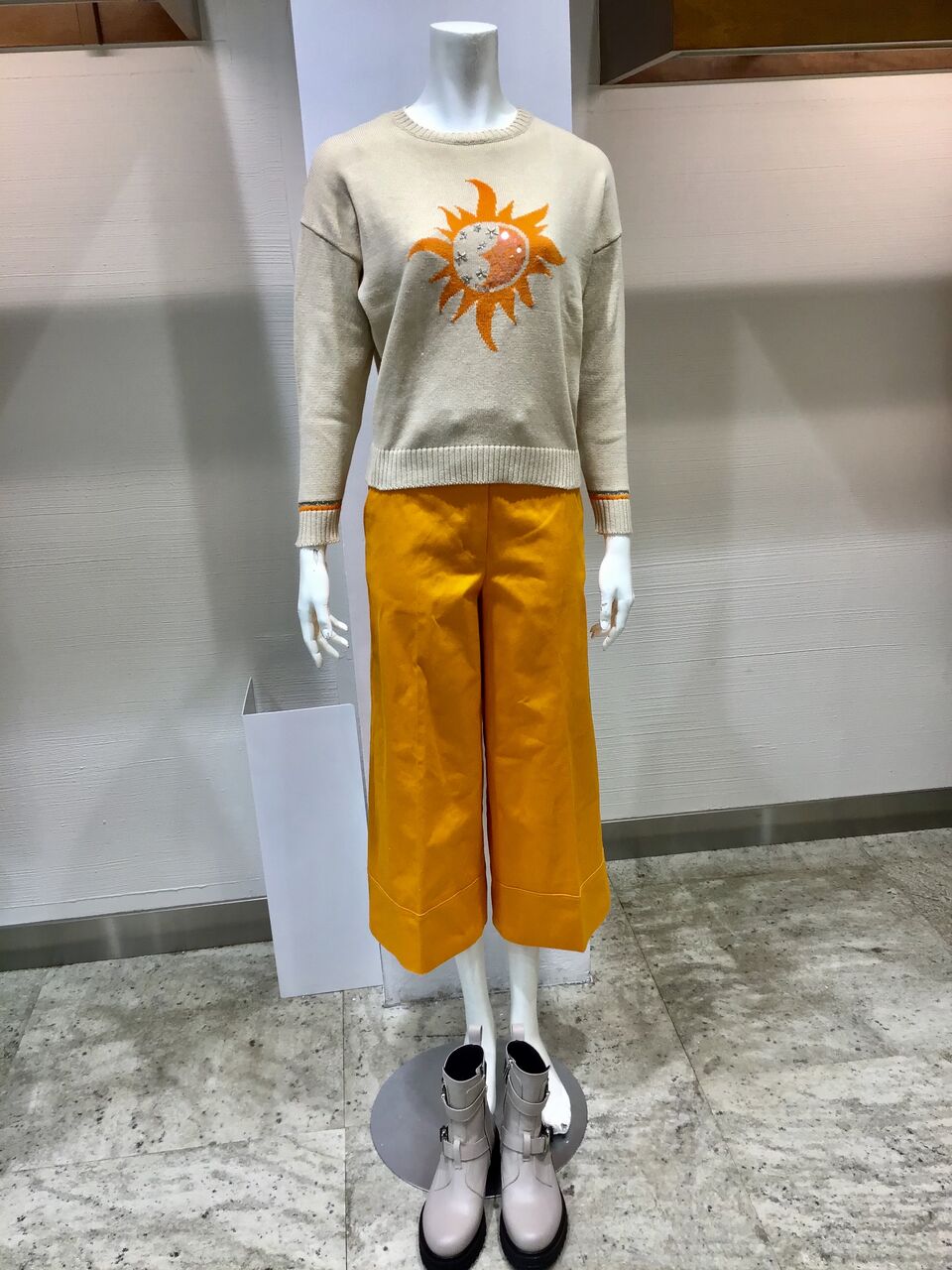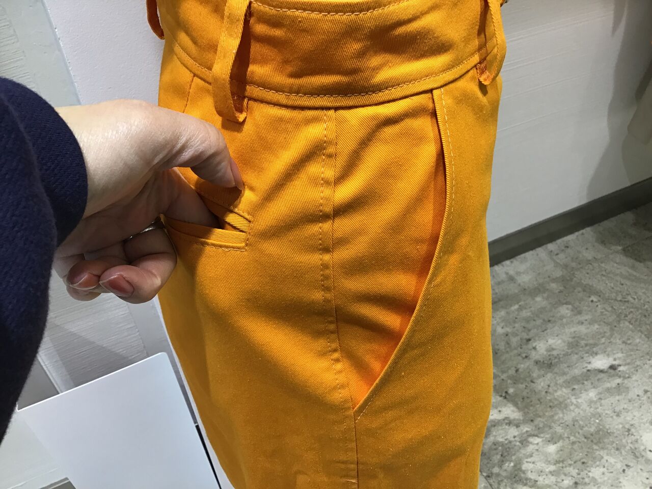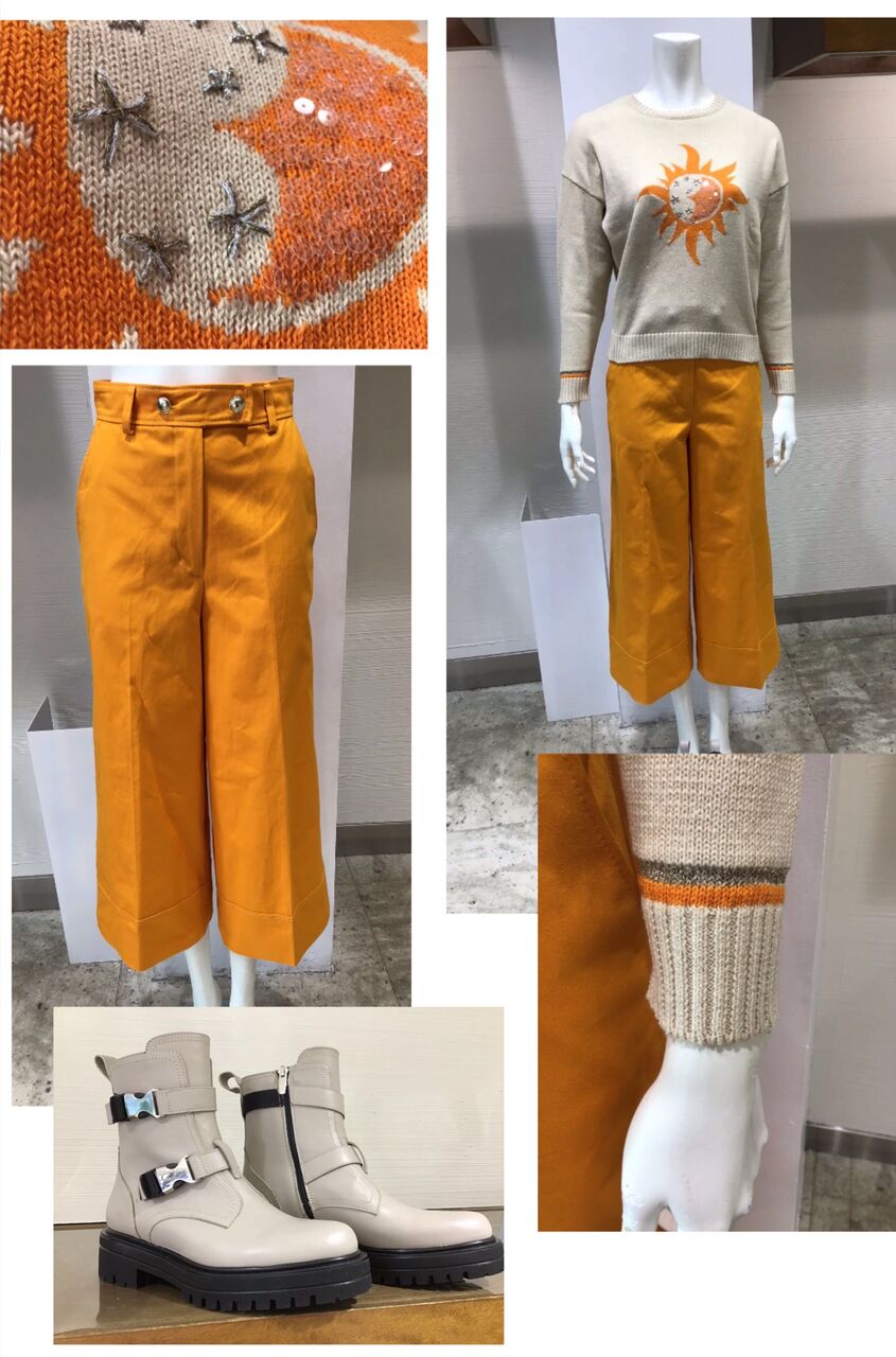 パンツも同じフレッシュなオレンジ色を