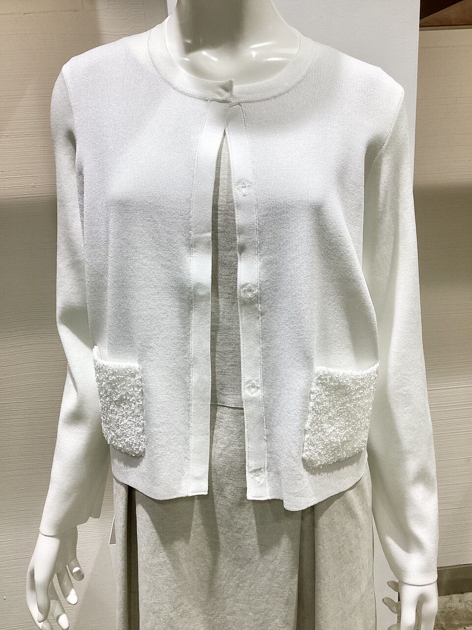 このカーディガンはニット素材なんですけど…