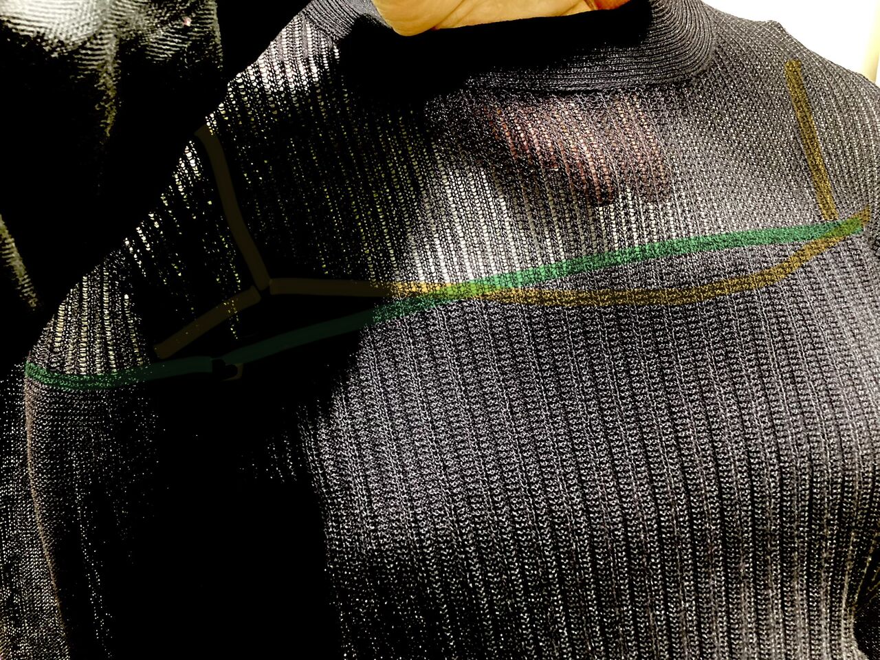 肩が出るような袖口と…