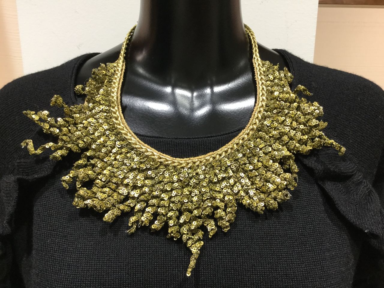 肩には5つ布で包んだボタンが付いていて