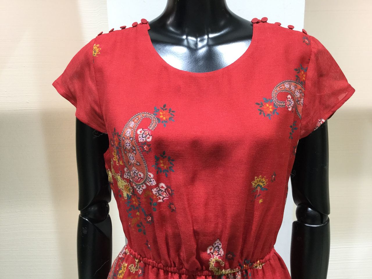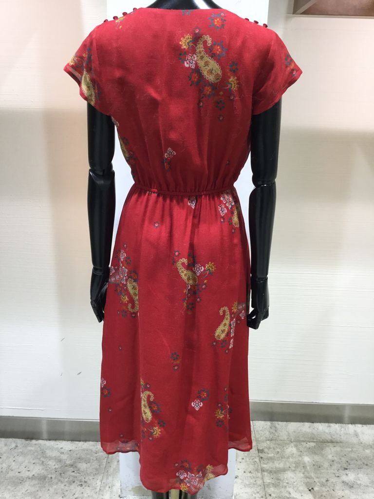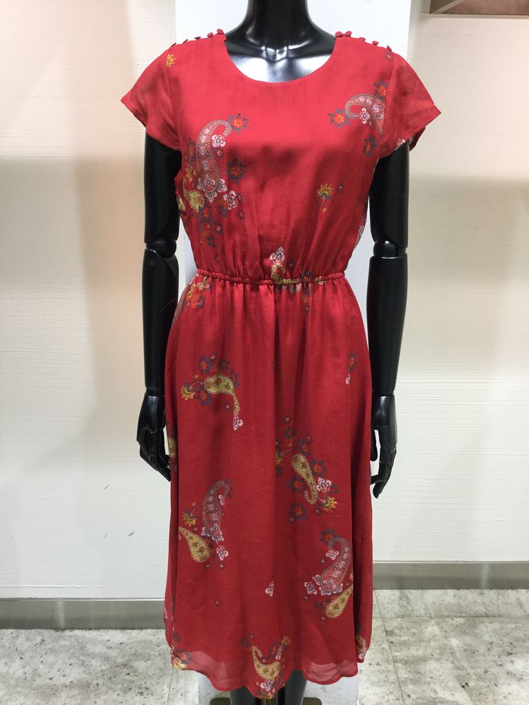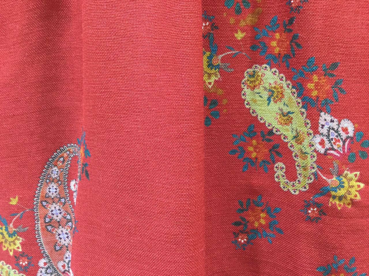 赤に映えるエスニック風ペイズリー柄が